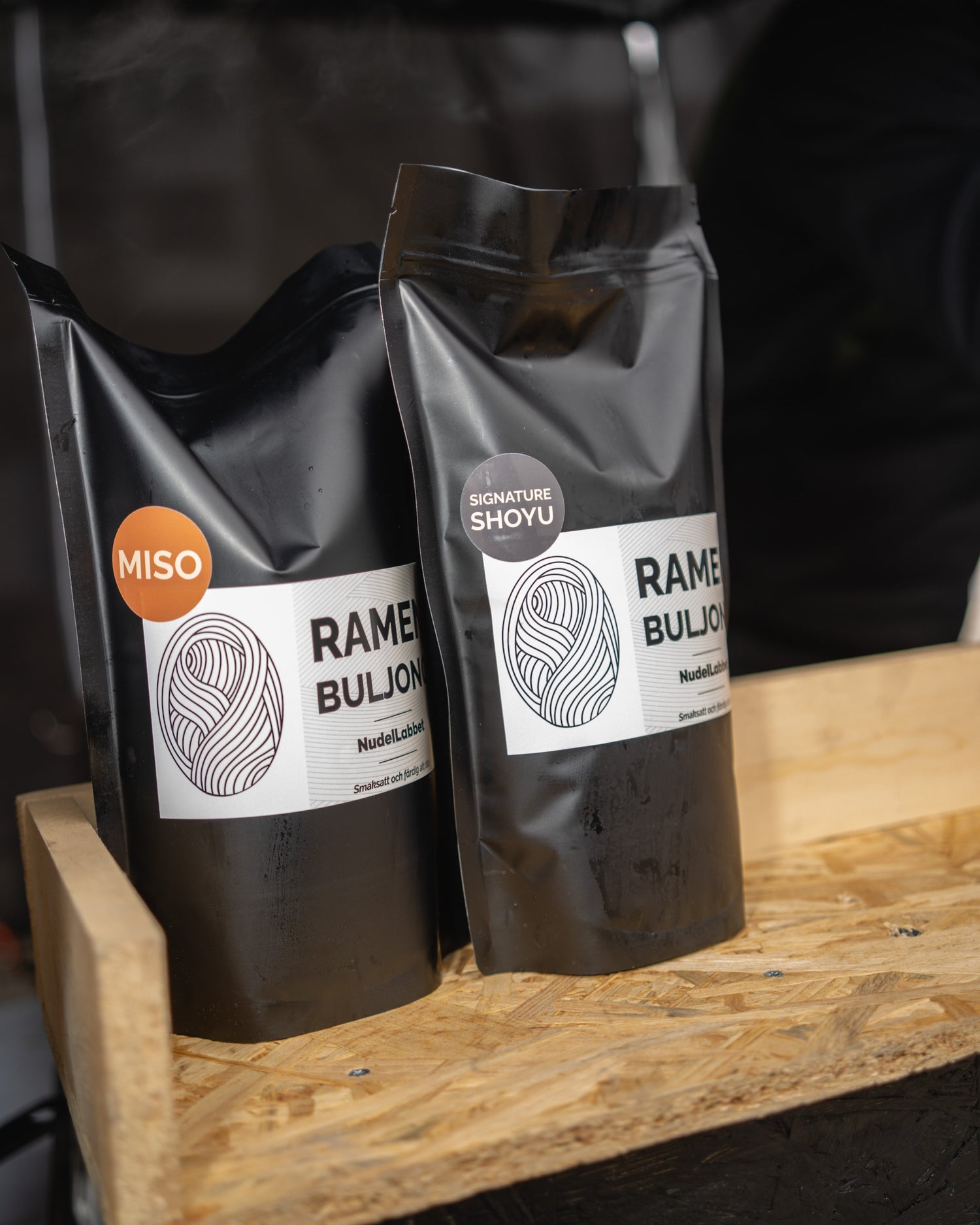 Färdiga ramenbuljonger kokade av Nudellabbet personligen, småskaligt och utan några mellanhänder eller kompromisser
